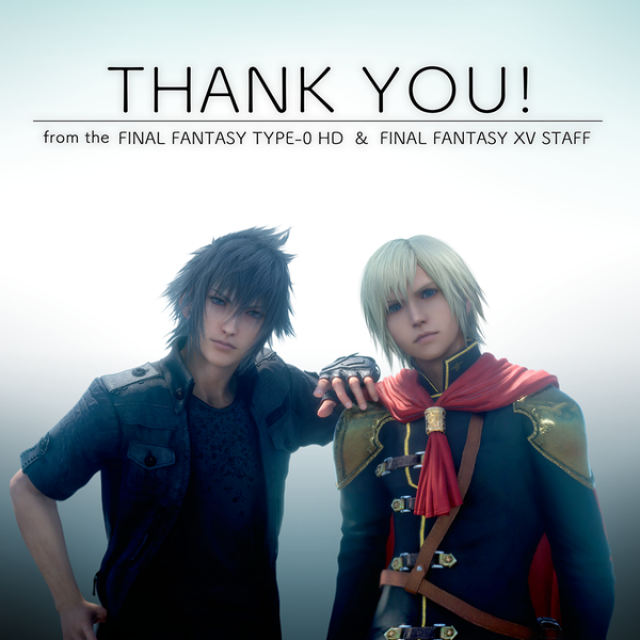by Craig S , posted on 10 April 2015 / 4,472 ViewsSquare Enix has announced that Final Fantasy Type-0 HD has shipped 1 million copies worldwide. The announcement was made via the Japanese Final Fantasy Twitter account, alongside the following thank you image: