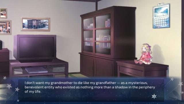 The experience I got playing A Winter’s Daydream wasn’t at all what I was expecting going into it. Publicity promoting the game contains lines such as “A very cute grandmother!!”, which meant I was braced for a breezy and vapid romance visual novel with a silly twist, but what I instead found was a brief but unforgettable tale about family, loss, and the cruel reality of how fleeting life can be.