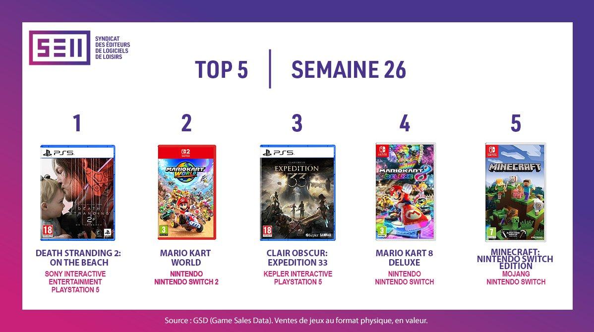 by William D'Angelo , posted on 07 July 2025 / 2,107 ViewsDeath Stranding 2: On The Beach (PS5) has debuted in first place on the French charts for week 26, 2025, according to SELL.