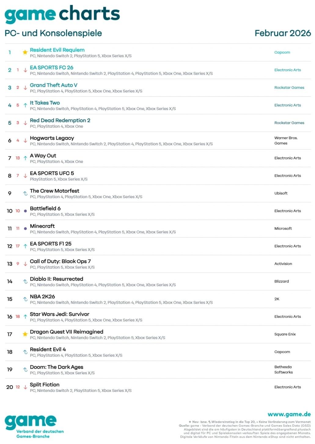 by William D'Angelo , posted on 11 March 2026 / 2,567 ViewsThe list of the best-selling games in Germany for February 2026 have been released via game.de.