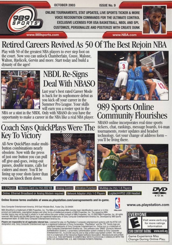 NBA Shootout 2004 lets you play with the NBA elite. Build a dynasty of the ages with current NBA stars or legends such as Wilt Chamberlain, Moses Malone, Magic Johnson, or Clyde Drexler. Career mode allows you to create a player, join the Summer Pro League, earn a spot in the National Basketball Development League, and work your way through the ranks to get signed by the NBA. This year's NBA Shootout also gives you more control over plays with mid-air shot changes and mini-plays.
