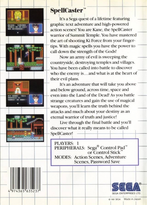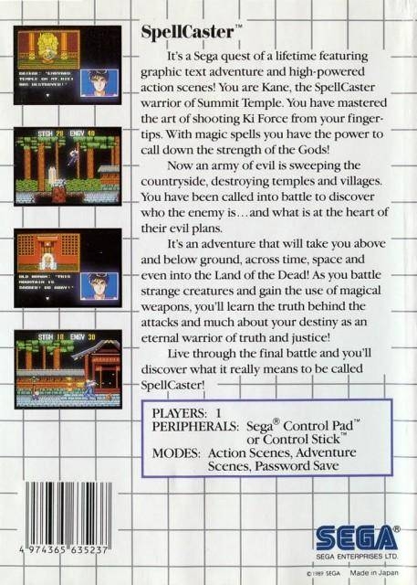 You are Kane, the SpellCaster warrior of Summit Temple. You have mastered the art of shooting Ki Force from your fingertips. With magic spells you have the power to call down the strength of the Gods! Now an army of evil is sweeping the countryside, destroying temples and villages. You have been called into battle to discover who the enemy is... and what is at the heart of their evil plans. It's an adventure that will take you above and below ground, across time, space and even into the Land of the Dead! As you battle strange creatures and gain the use of magical weapons, you'll learn the truth behind the attacks and much about your destiny as an eternal warrior of truth and justice! Live through the final battle and you'll discover what it really means to be called SpellCaster!