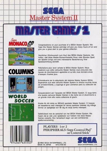 Congratulations on your purchase of a SEGA Master System. We hope this Master Games cartridge will give you many hours of fun and give you a great start to your games collection.