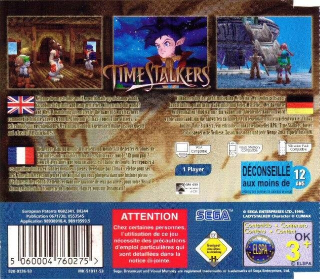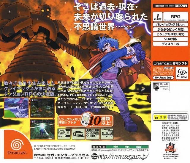 Welcome to a mysterious world, a world made up of strange lands, hazardous labyrinths and many mysteries. Who created this world? And why? A wandering adventurer by the name of Sword has been summoned to find the answers. From RPG legends 'Climax' comes Time Stalkers, a refreshingly unconventional RPG. Featuring randomly generated dungeons, sub quests and a host of VM mini games.