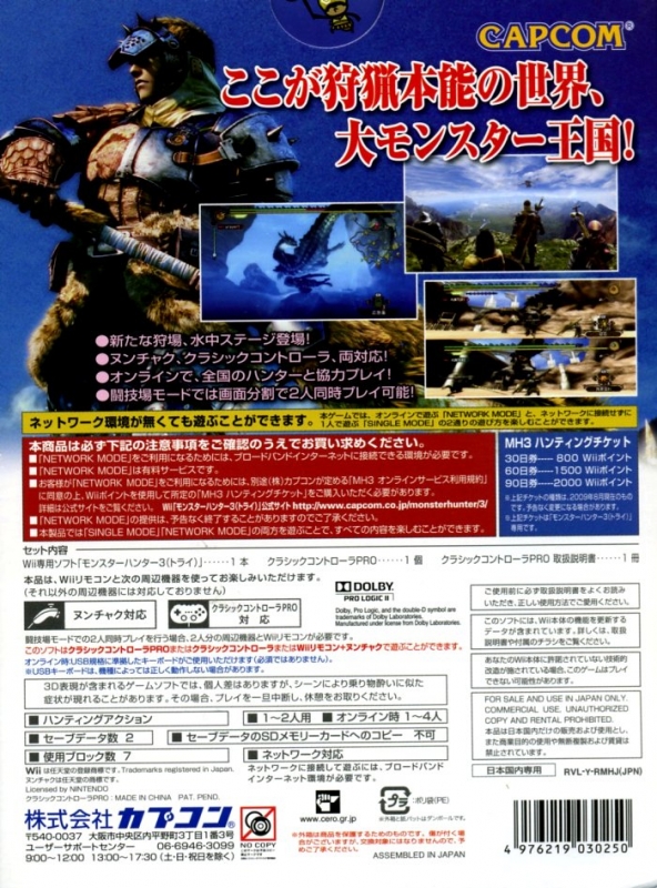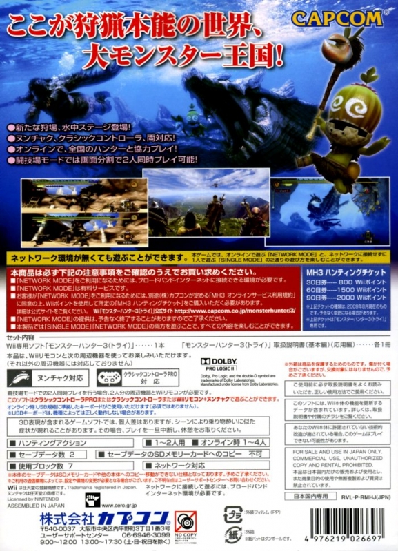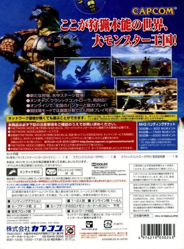 Using Wii to its fullest, showcasing beautiful graphics and a dynamic ecosystem, Monster Hunter Tri allows for unparalleled co-op gameplay, both on and offline. Hunt with up to four players online or two players offline in arena mode. Also, in Arena mode, you’ll have the ability to save your character’s information to the Wii Remote directly so you’re always ready to play at a friend’s house!