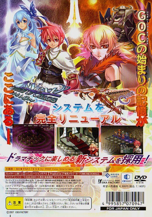 Generation of Chaos Desire is a Role-Playing game, developed and published by Idea Factory, which was released in Japan in 2007.