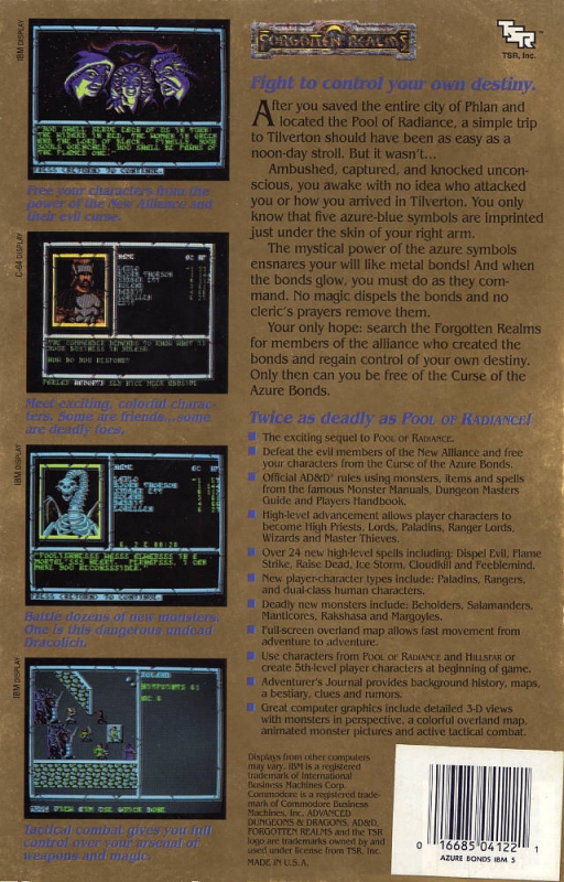 Your only hope: search the Forgotten Realms for members of the alliance who created the bonds and regain control of your own destiny. Only then can you be free of the Curse of the Azure Bonds.
