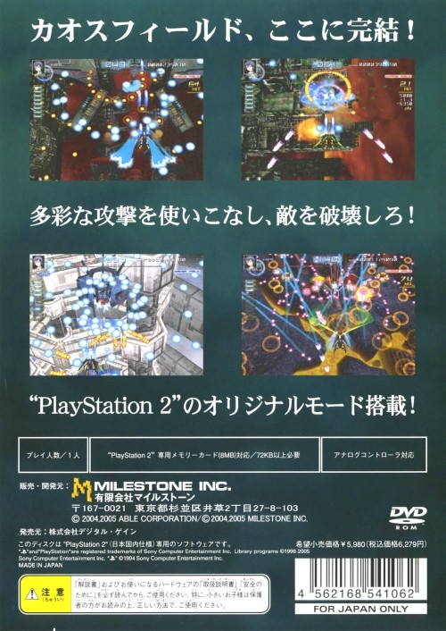 Chaos Field: New Order is a Shoot-'Em-Up game, developed and published by MileStone Inc., which was released in Japan in 2005.
