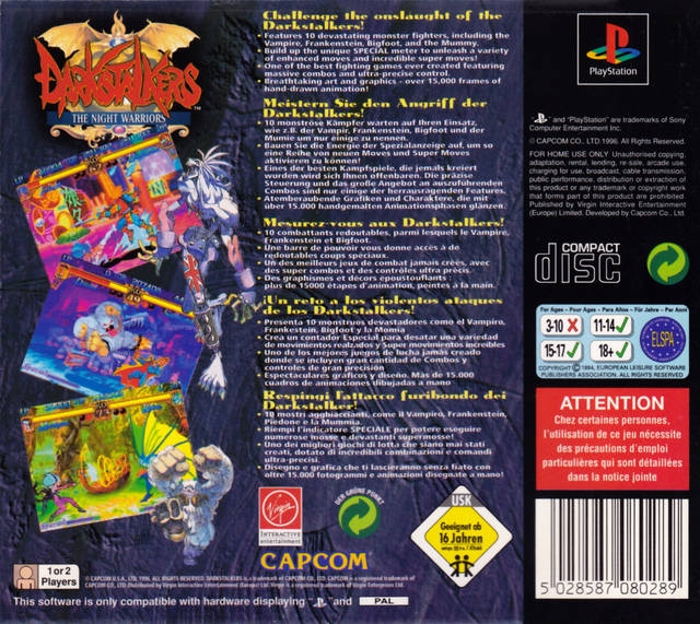 DarkStalkers: The Night Warriors is a 2D Fighting game, developed and published by Capcom, which was released in 1996.