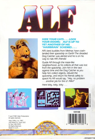 Guide Alf through the maze-like neighborhood, as he collects all that was lost from the spaceship. Join him in the race against time and the Dog Catcher as you help him collect objects, rebuild the spaceship, and return his friends safely to space! As Alf would say, "Hey, no problem...another job for the ol' Alfer!"