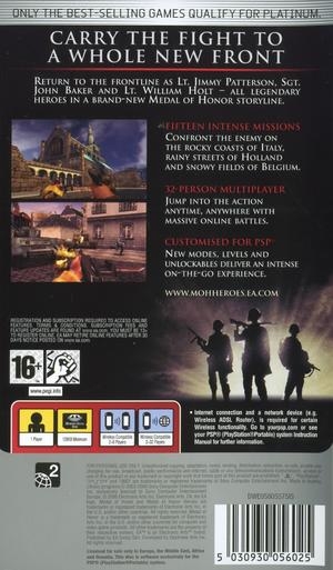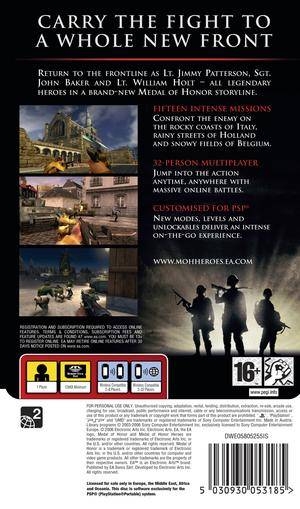 With an entirely unique storyline and PSP-specific feature set, players will experience a totally new single player campaign and choose from six different Multiplayer modes within 15 different maps, while participating in wireless Multiplayer sessions with up to 32 players. Or choose to play with up to 8 players across the room in a local Ad hoc game. “Quickplay” missions in skirmish game mode, allow players to jump right into the action or customize mission scenarios for added re-playability. Relive your favorite Medal of Honor moments by unlocking over 20 classic characters to use in multiplayer games.