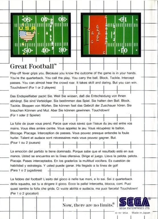 Playoff fever grips you. And no wonder. You're the driving force that can take your football team to the top in this rough and tumble contest between the leagues. The outcome of the game is in your hands. As the quarterback, you select the plays. Line up the formations. Call the signals and carry the ball. Cut down your opponent with deadly blocking. Intercept a pass. Make a flying tackle. All you need is skill. Strategy. Cunning. And nerve. For non-stop action that charges across the screen. You decide to pass. It looks good. Touchdown!