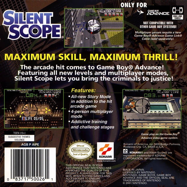 Silent Scope is a Rail Shooting game, developed by Now Production and published by Konami, which was released in 2002.