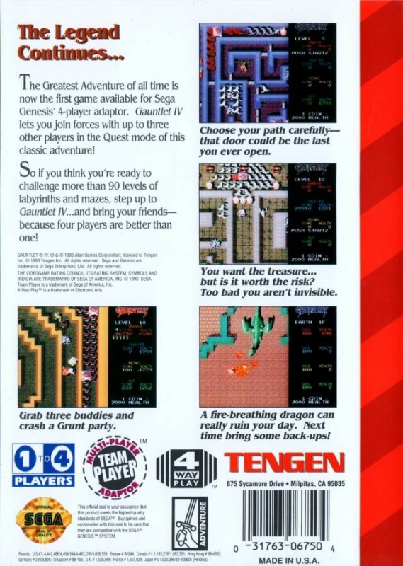 The Greatest Adventure of all time is now the first game available for Sega Genesis' 4-player adaptor. Gauntlet IV lets you join forces with up to three other players in the Quest mode of this classic adventure!