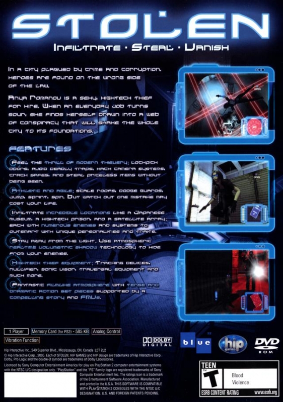 Combining a blend of third-person, stealth and action games, Stolen delivers a tense, hi-tech thriller.