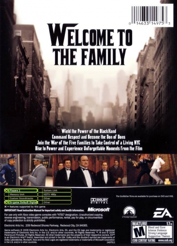Join the Corleone family and earn respect through loyalty and fear as you rise through the ranks to become Don in a living 1945-1955 New York. The Godfather™ The Game puts you at the center of the action in one of history's most revered cinematic masterpieces, letting you create yourself in the game and then choose your path as you rise from lowly outsider to envied and feared Don.
